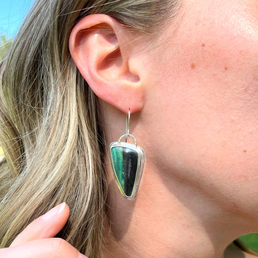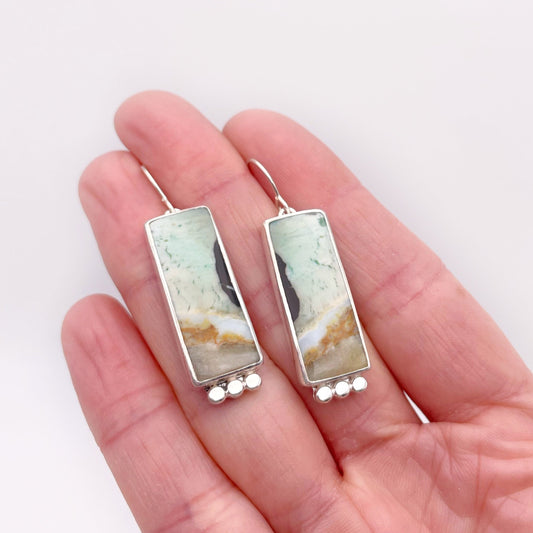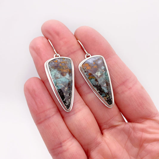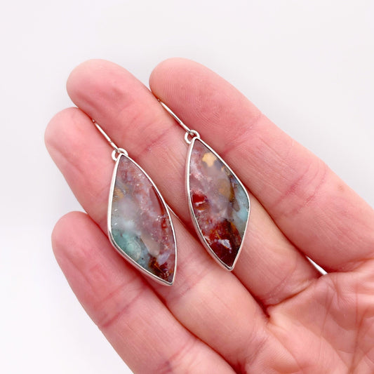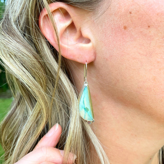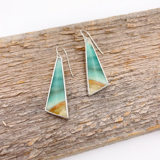 Blue Opalized Petrified Wood Dangle Earring No. 07