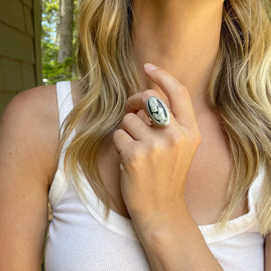 Natural Turquoise Statement Oval Ring | Size 6.25
