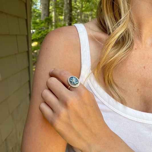 Natural Turquoise Statement Oval Ring | Size 7.75