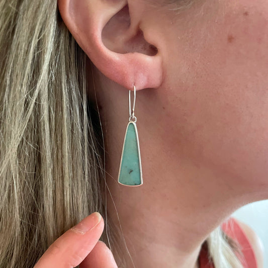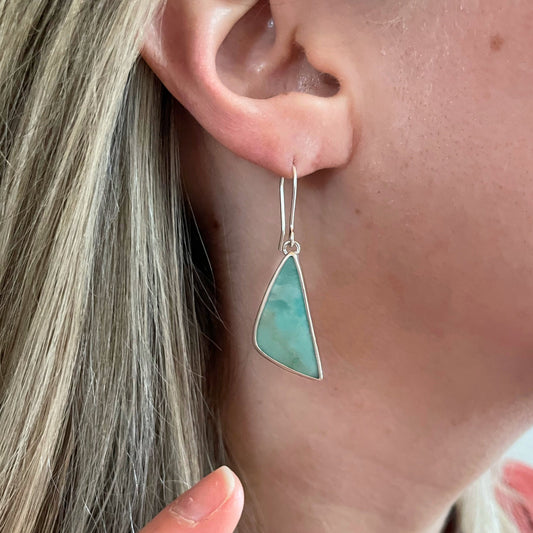 Blue Opalized Petrified Wood Dangle Earring No. 10