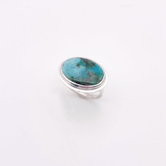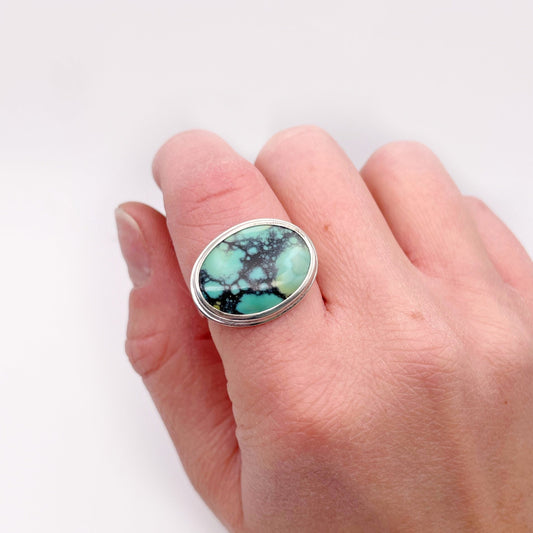 Large Horizontal Oval Turquoise Ring | Size 8.5