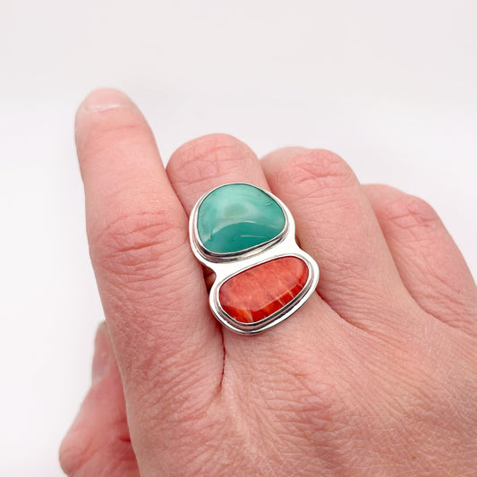 Fox Turquoise & Spiny Oyster Duo Ring | Size 9