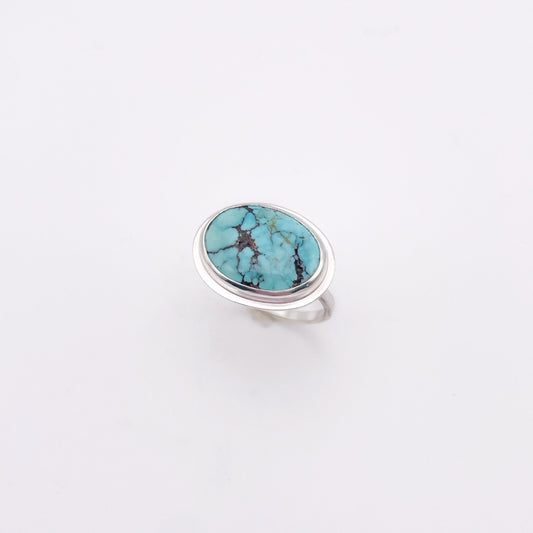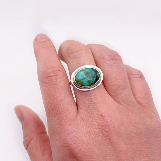 Horizontal Oval Turquoise Ring | Size 7.5