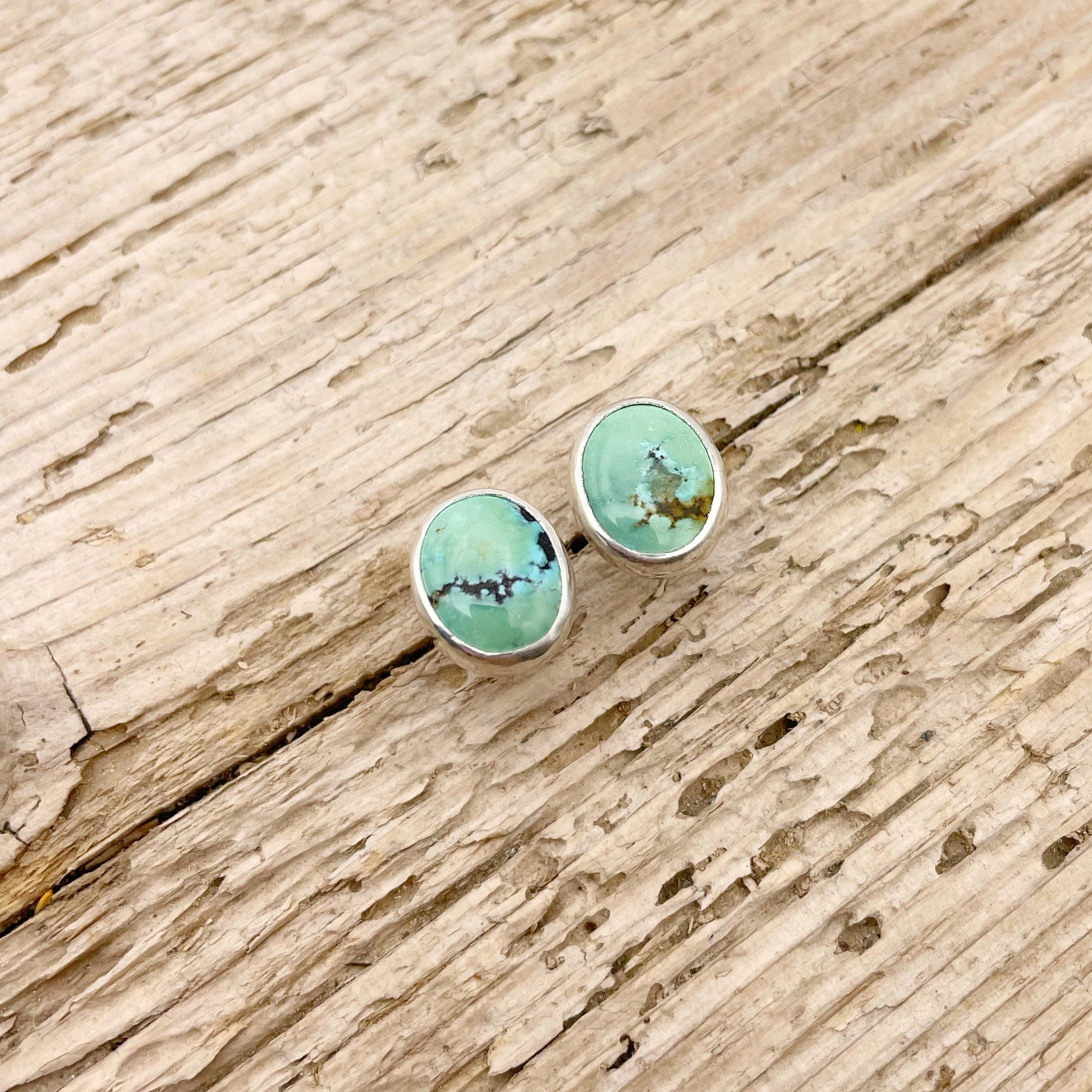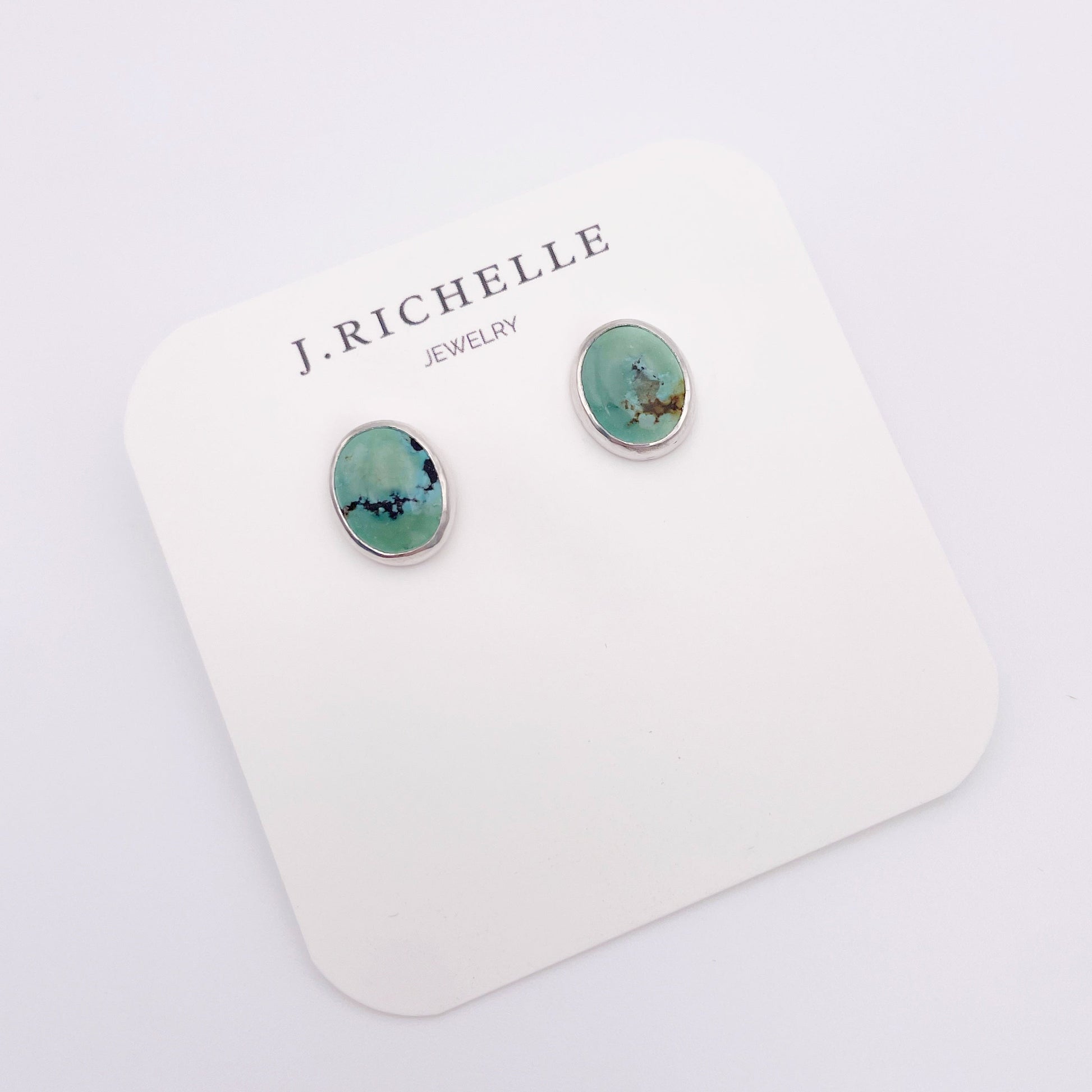 With a gorgeous blue-greens and a dark matrix, these natural Turquoise oval studs will be a gorgeous pop on your ear! If you have multiple earrings holes and love to stack your earrings, these studs will pair well with others. With a push post backing, these studs are easy to pop on as you finish styling your outfit!